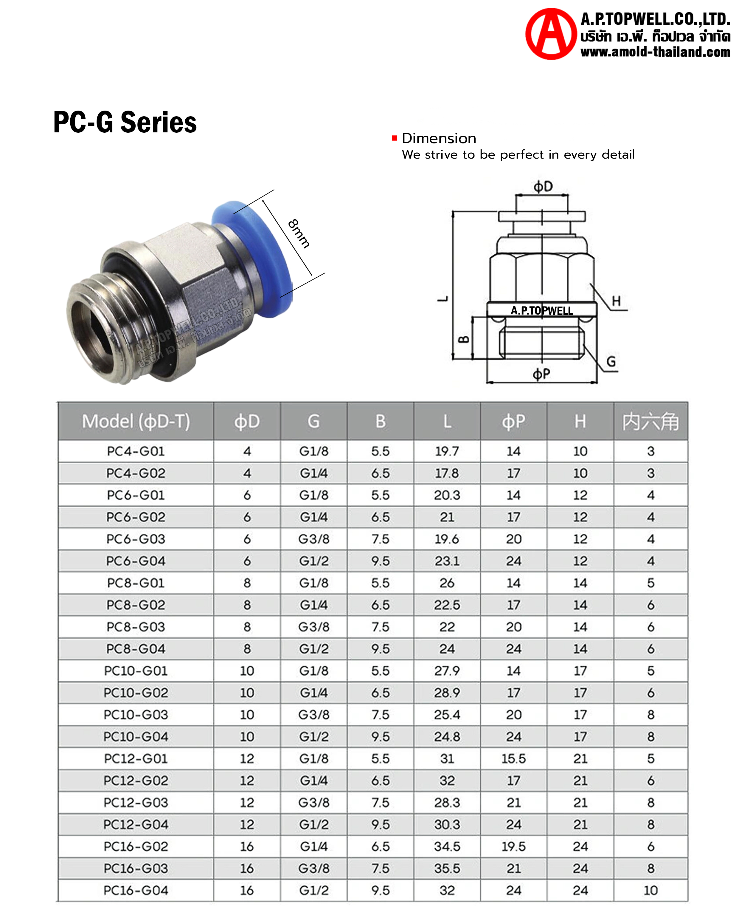ข้อต่อลม PC-G